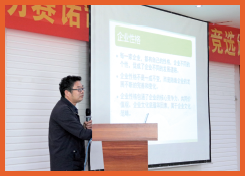此次比賽,在公司各部門的配合下,共35 人報名參賽,通過27 號、28號兩天激烈角逐,最終6 人入選決賽并獲獎。在初賽階段,我們看到了業務同事為我們講解拜訪知識與技巧,以及產品知識的詳細介紹,職能部門的同事則為我們清晰的介紹了部門業務涉及的專業知識,大家從不同的角度,以不同的方式,講解著自己準備的內容。在講臺上,或引用案例,運用具體的實際例子,來分析講解較難理解的知識點;或運用道具,為我們演示操作方法和注意事項;或通過圖片場景,為我們展示拜訪注意事項等等。