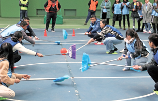 本屆運動會除了“觀山長跑”,還設立了“接力五子棋”、“山寨曲棍球”、“高蹺接力往返跑”、“乒乓球運送”等項目。“接力五子棋”緊張、“山寨曲棍球”激烈、“高蹺接力往返跑”熱鬧、“乒乓球運送”刺激。身處賽場,哪怕你是站在一旁的拉拉隊、裁判,也會融入這熱烈的氛圍當中,看著運動員們認真努力、奮力拼博的姿態,你也會動容。有人臉上掛著不輸給專業運動員的認真神情,有人緊張得攥緊了一對小拳頭,有人聲嘶力竭的為運動員加油,有人為順利抵達終點的隊員歡呼雀躍……