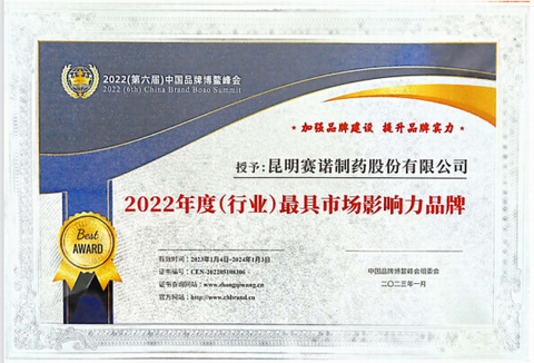 此次論壇上,大會一共設置23個獎項,其中企業獎14類,人物獎9類,在全國范圍內評選出“2022年度十大影響力品牌”以及4家“2022年度(行業)最具市場影響力品牌”,賽諾制藥喜獲“2022年度(行業)最具市場影響力品牌”。